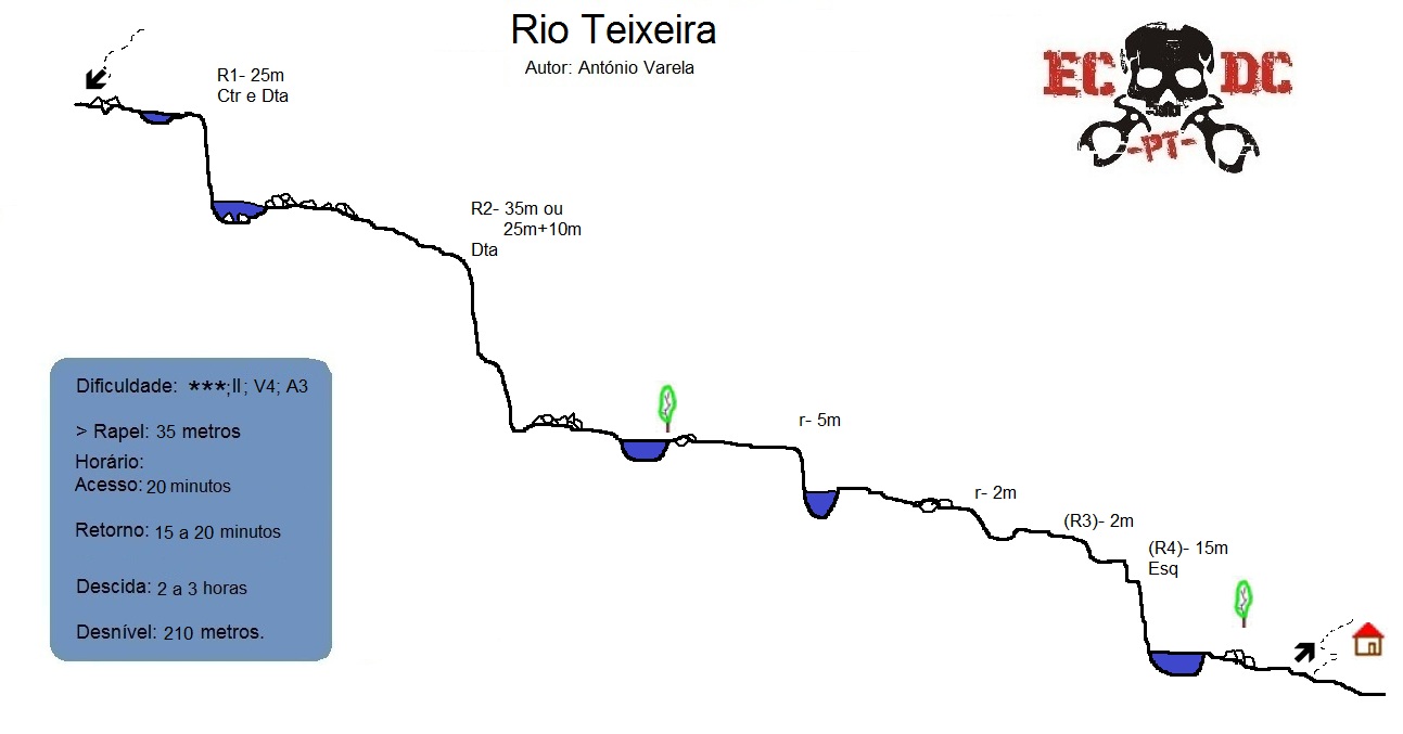 Von Porto auf der A 1/E 1 ca. 53 km südwärts. Auf der Höhe von Aveira ab auf die kreuzende A 25/IP 5/E 80 in (östlicher) Richtung Viseu. Etwa 20 km nach dem Abbiegen bei der Ausfahrt 9 von der Autobahn ab Richtung Sever de Vouga. Man quert wenig später den Rio Vouga und nimmt nach der Brücke die am Fluss entlangführende N16 in östlicher Richtung. Man durchfährt Paredes und fährt weiter am Fluss entlang auf der EM 569. 44 km nach Verlassen der Autobahn biegt man nun re. ab auf die N 227 und kommt nach Sao Jao da Serra. Beim zentralen Platz in der Ortschaft geht hinter der Kirche die Straße nach Cercal ab. Am Ortsende von Cercal folgt man dem Forstweg noch weitere 3 km, wobei hier möglichst kein Gegenverkehr erfolgen sollte. Wo der bislang eben verlaufende Forstweg beginnt, sich steil abzusenken, Auto abstellen.http://www.descente-canyon.com/canyoning/canyon/21603/Texeira.html